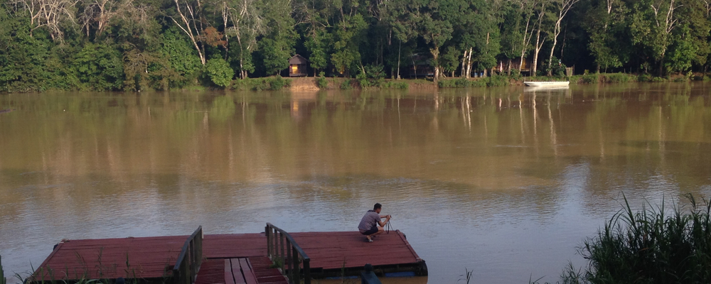 Das Bild zeigt Vincenzo im Jahr 2014 beim Fotografieren am "Sungai Kitabatangan" (Fluss), ebenfalls auf Borneo, Malaysia.